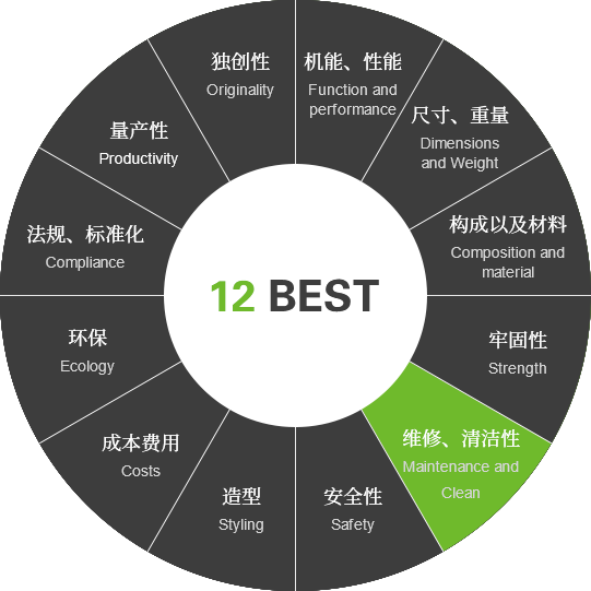 產(chǎn)量 法規(guī) 環(huán)保 成本 造型 安全性 維修 牢固 構(gòu)成 尺寸 機(jī)能 獨(dú)創(chuàng)